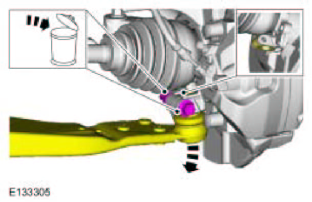 - Use care when releasing the lower arm and wheel knuckle into the resting position or damage to the ball joint seal may occur.