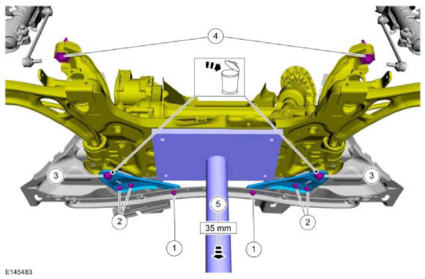 4. NOTE: While tightening the subframe bolts, make sure the front subframe does not move.