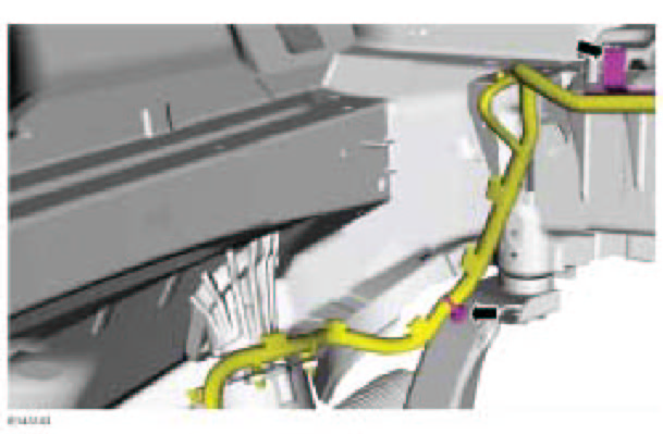 2. NOTICE: Disconnect the battery ground cable anytime the steering gear is being serviced or damage to the steering gear internal power relay may occur resulting in steering gear replacement.
