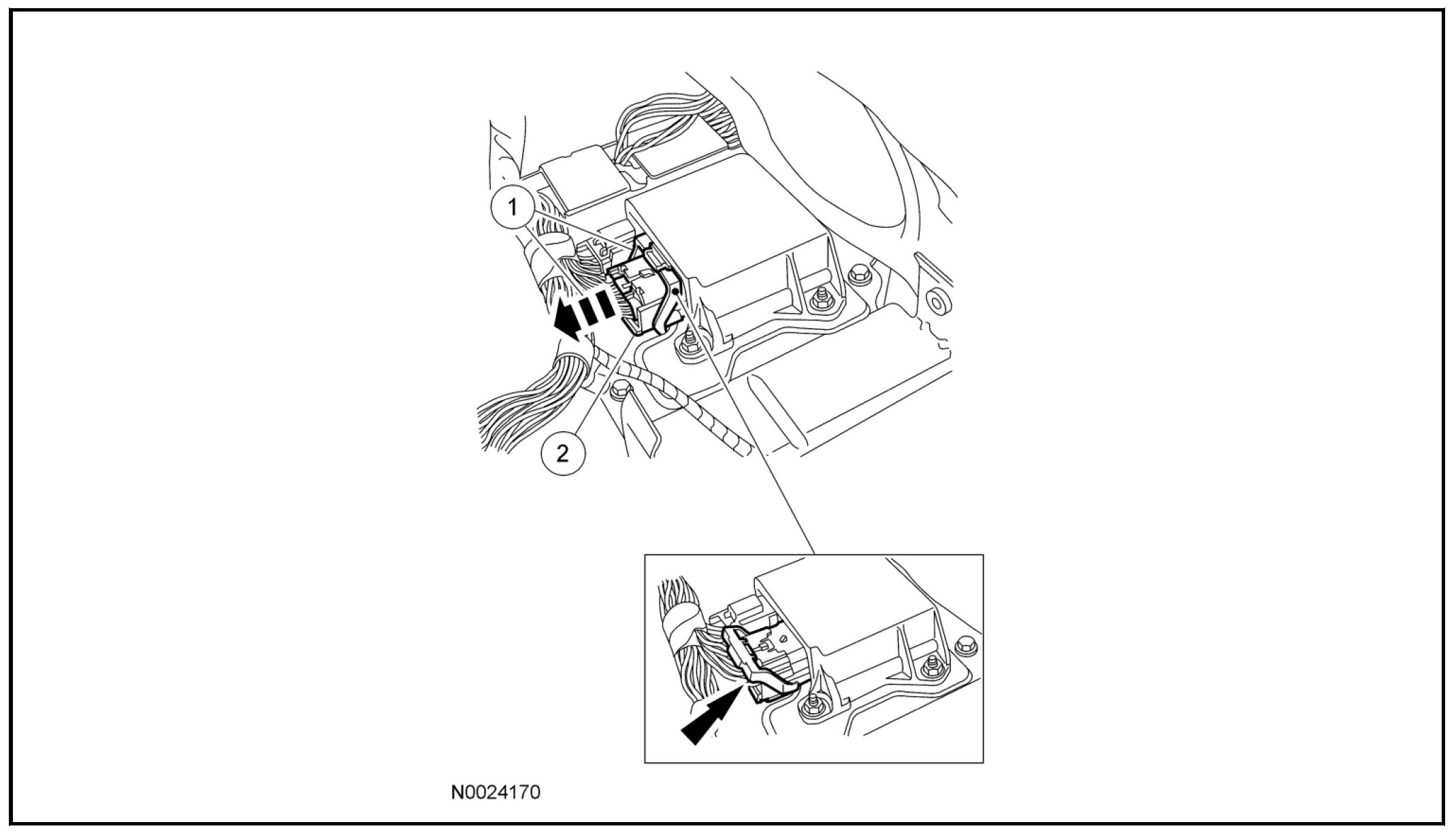 1. WARNING: Always tighten the fasteners of the restraints control module (RCM) and impact sensor (if equipped) to the specified torque. Failure to do so may result in incorrect restraint system operation, which increases the risk of personal injury or death in a crash.