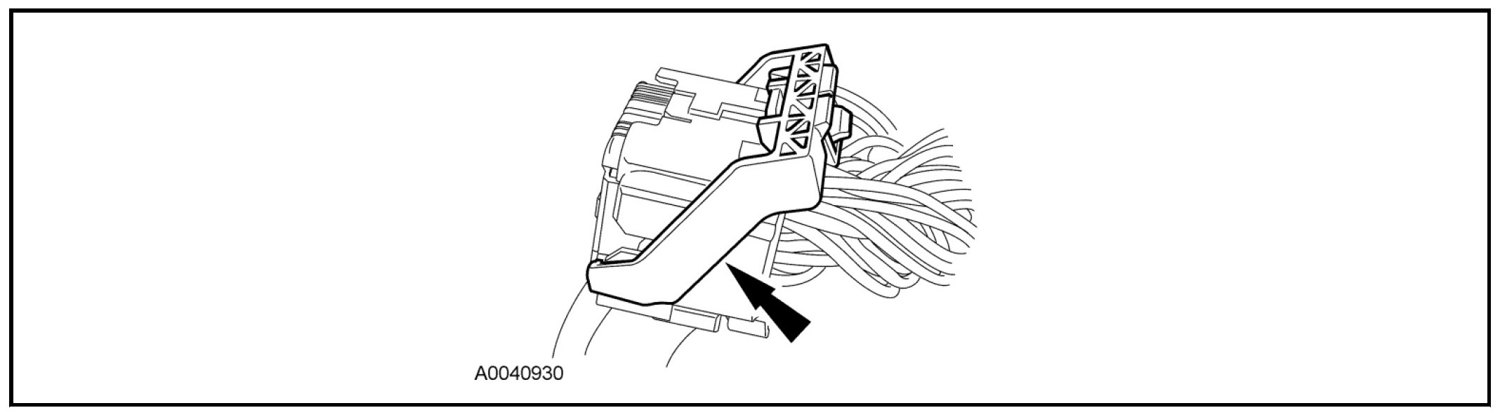 - Using the connector position assurance lever, pivot it toward the RCM, drawing the connector into the RCM.