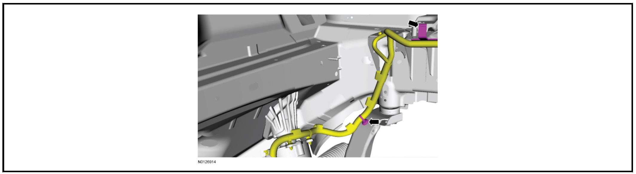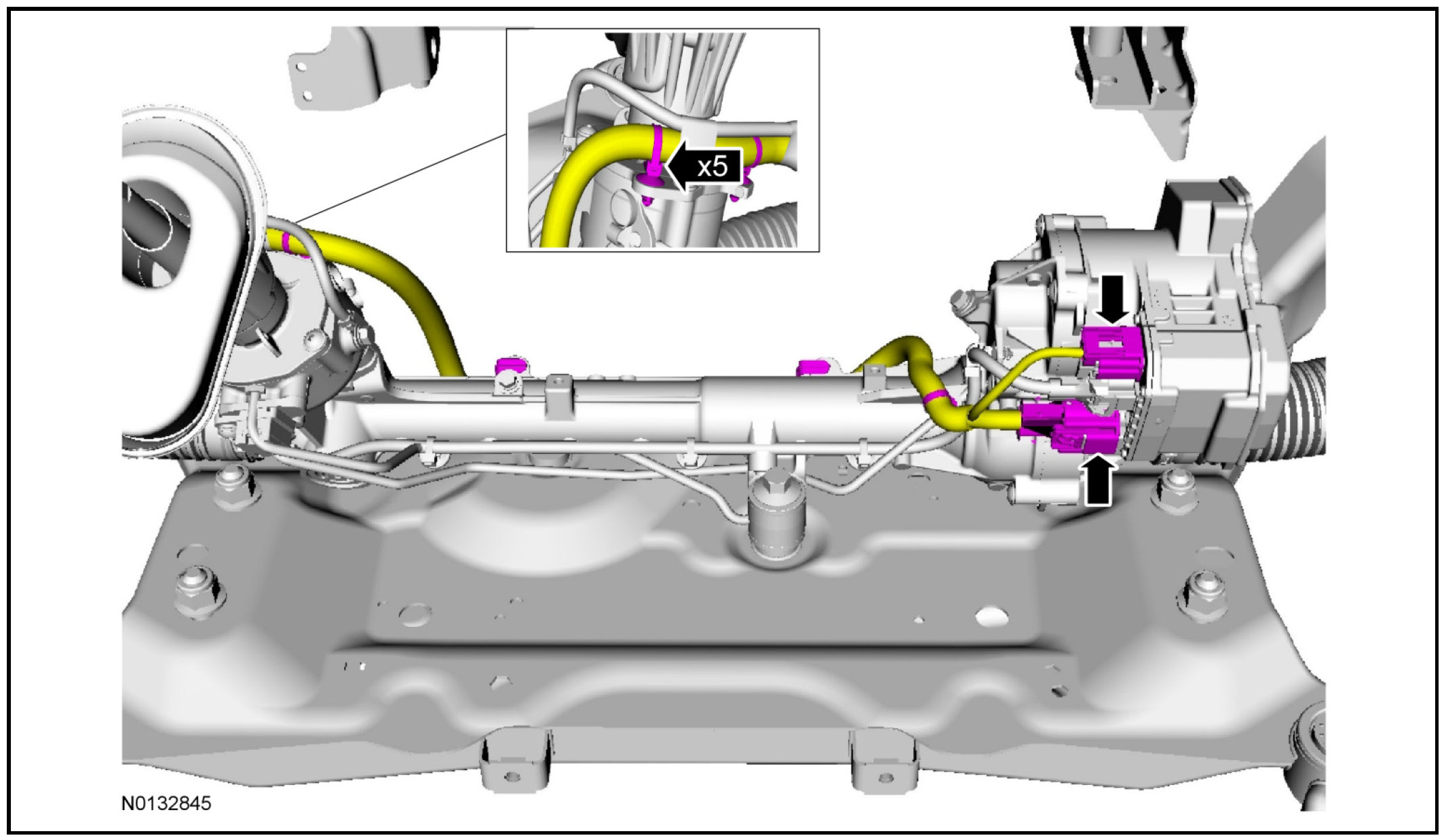 1. NOTICE: Disconnect the battery ground cable or damage to the steering gear internal power relay may occur resulting in steering gear replacement.