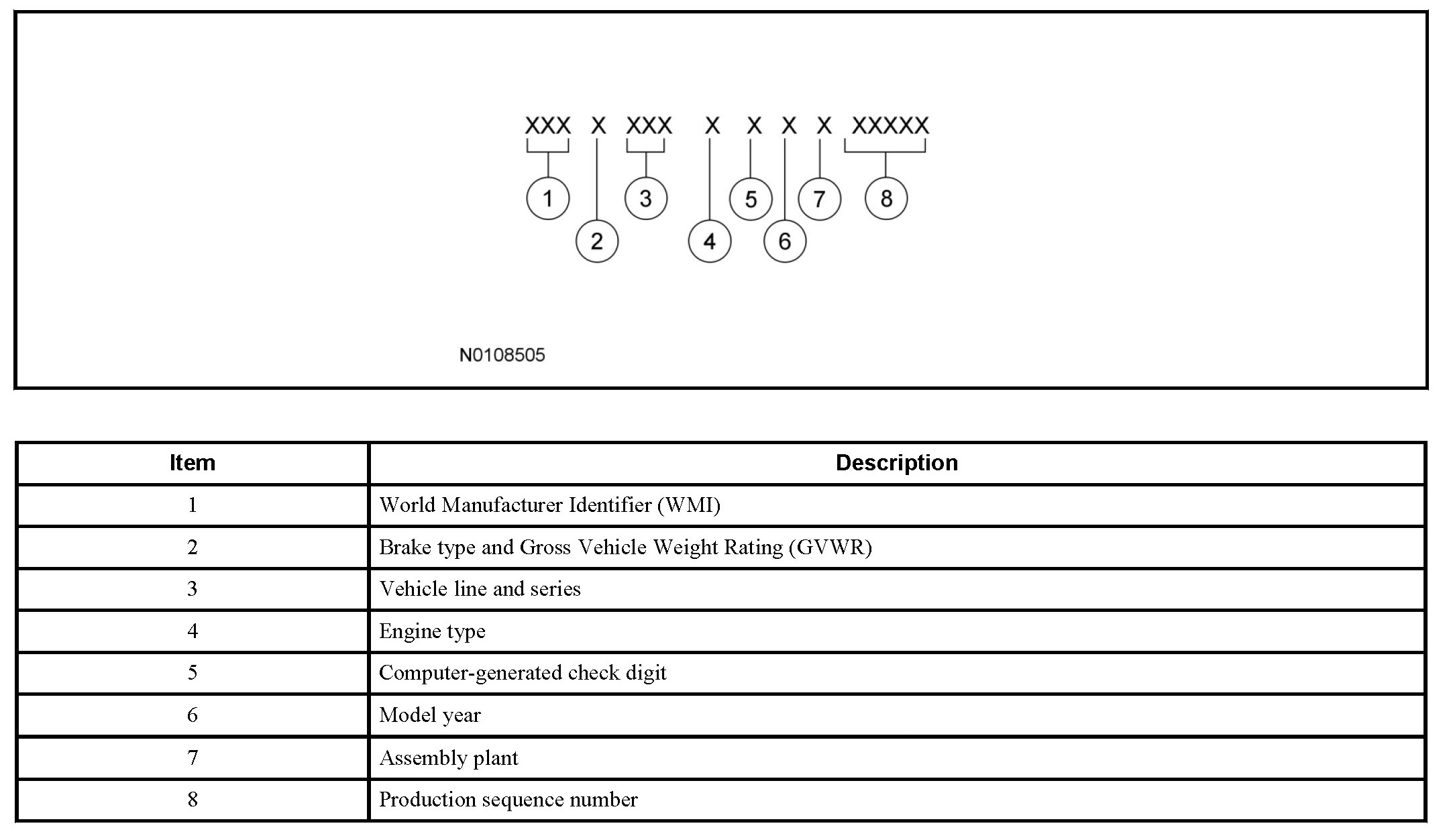 Positions 5 through 7 indicate vehicle line and series.