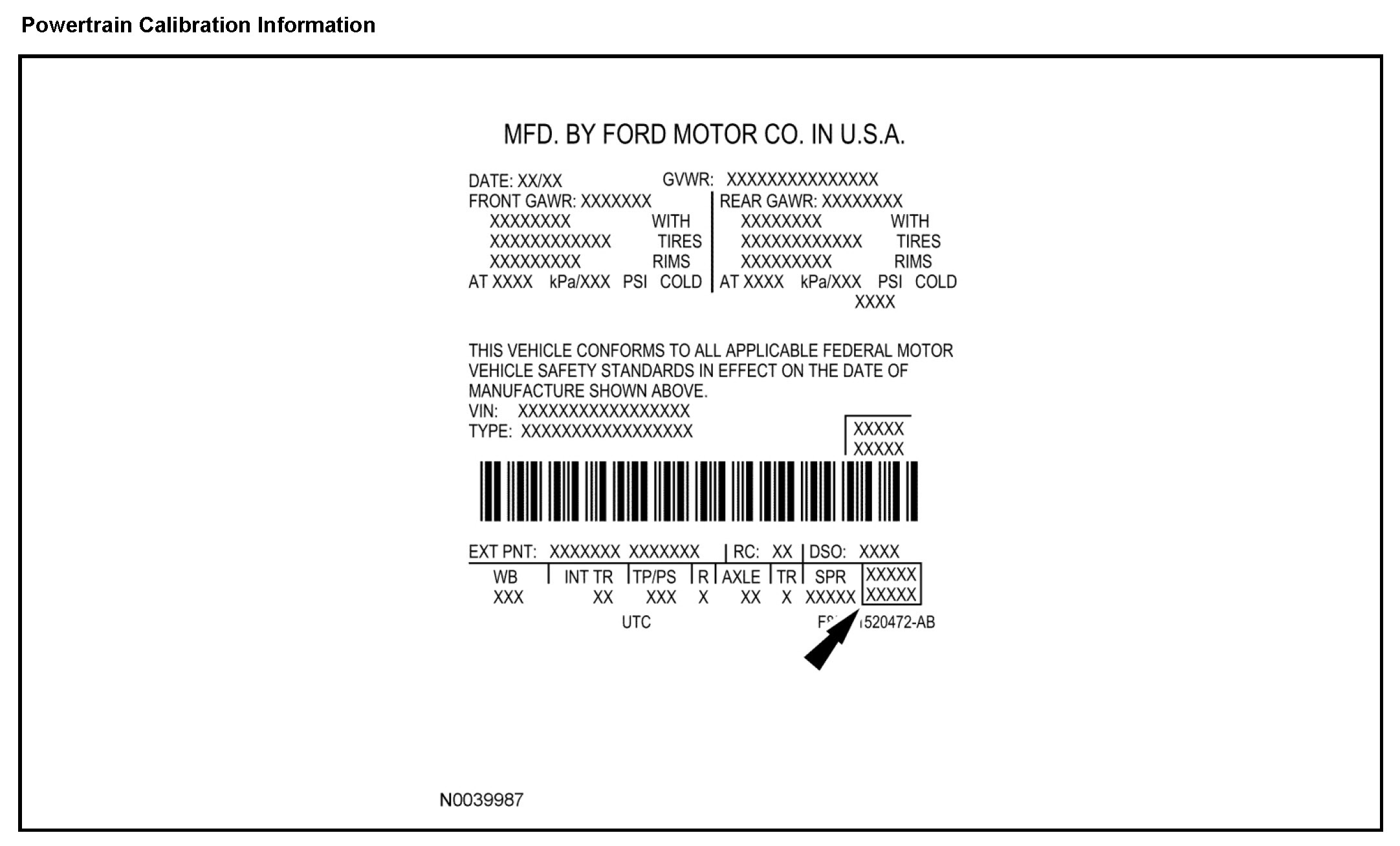 Powertrain calibration information is printed in the lower right corner of the VC label. Only the base calibration information is printed. Revision levels will not appear, however, they can be obtained through a scan tool using the most current software revision.