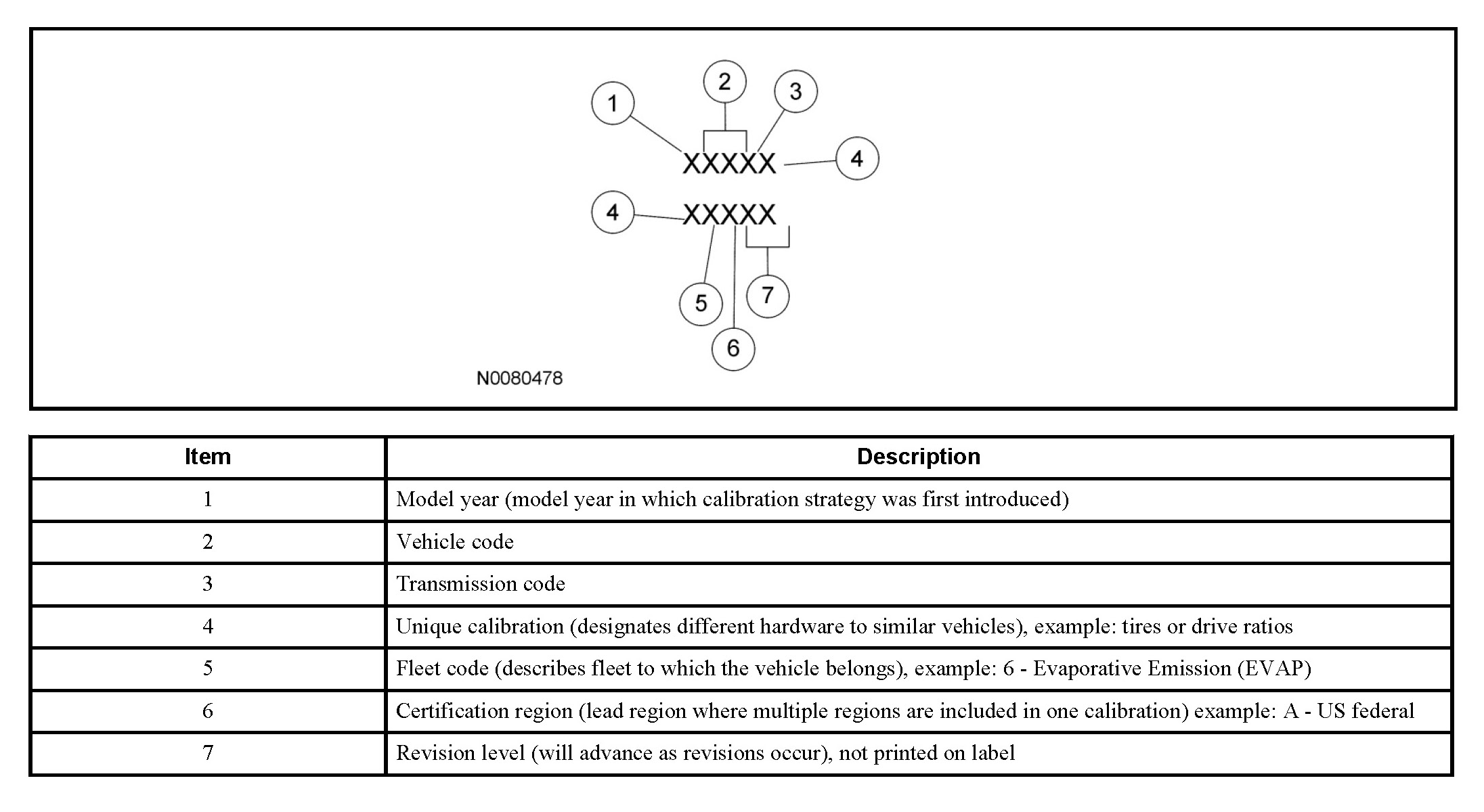 NOTE: Powertrain calibration information is limited to a maximum of 5 characters per line on the Vehicle Certification (VC) label. Because of this, calibration identification consisting of more than 5 characters will wrap to the second line on the VC label.