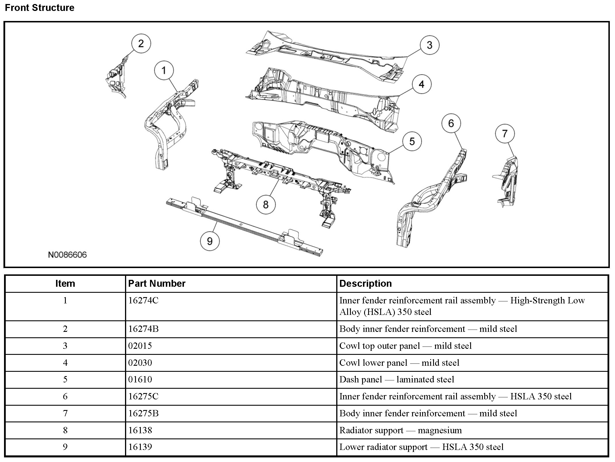 - Collision damage repair must conform to the instructions contained. Replacement components must be new, genuine Ford Motor Company parts. Recycled, salvaged, aftermarket or reconditioned parts (including body parts, wheels or safety restraint components) are not authorized by Ford.
