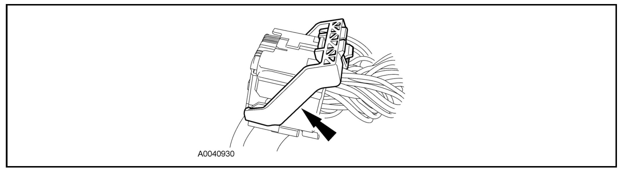 - Pivot the connector position assurance lever toward the RCM, drawing the connector in to the RCM.