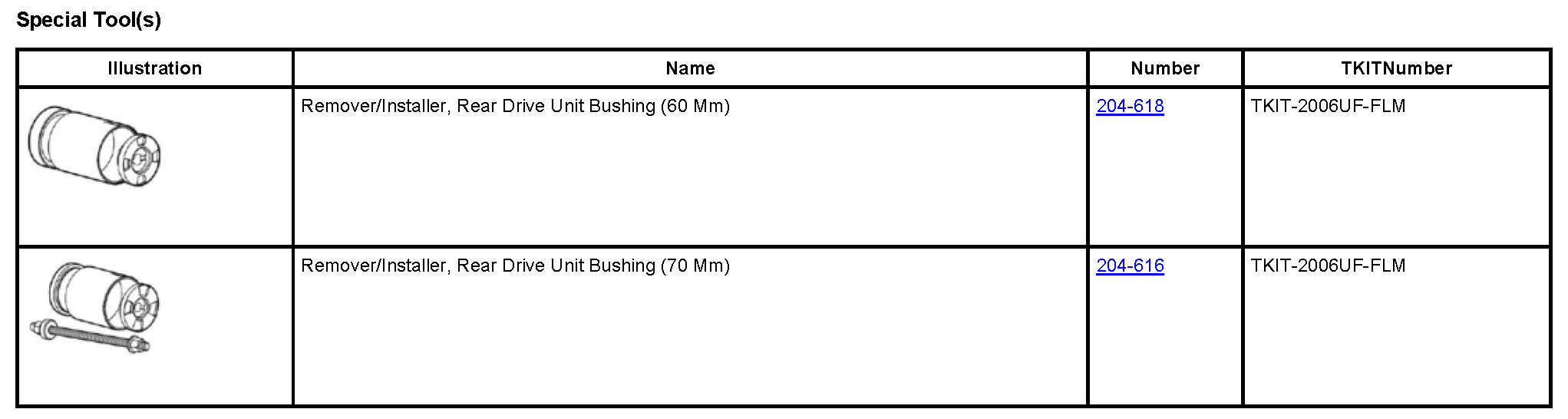 NOTE: When installing the RDU bushing, RDU 204-618 /2 will fall away as the RDU bushing is installed into the subframe. The RDU 204-616 /2 does not control the depth of the bushing. The RDU bushing is fully seated when the RDU 204-616 /2 falls away from the subframe, do not continue to tighten the RDU 204-616.