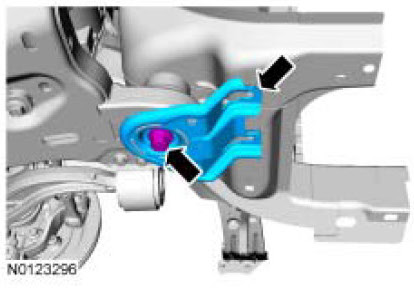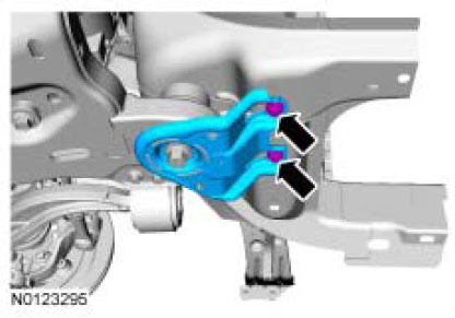 Remove and discard the 2 front subframe rearward bolts and remove the front subframe brackets.