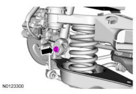 8. Remove and discard the 2 rear shock absorber lower bolts.
