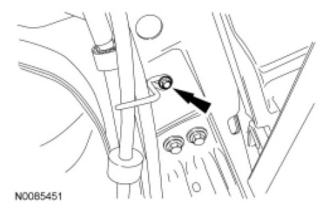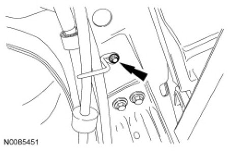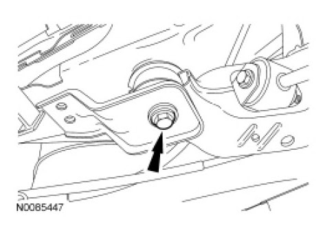 21. Remove and discard the 2 rear subframe assembly rearward bolts.