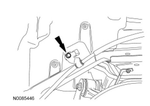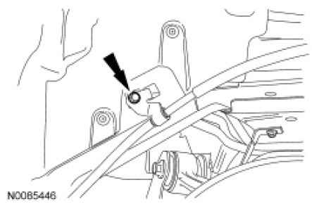 Remove the LH and RH wheel opening parking brake cable bracket bolts and position the wheel opening parking brake cable brackets aside.