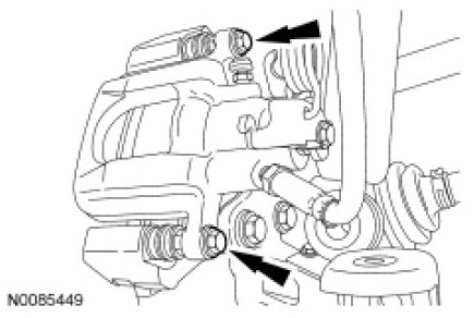 16. Remove the 4 rear brake caliper bolts.