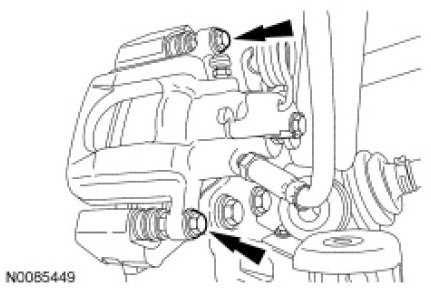 17. NOTICE: Do not allow the caliper to hang from the brake hose or damage to the hose can occur.