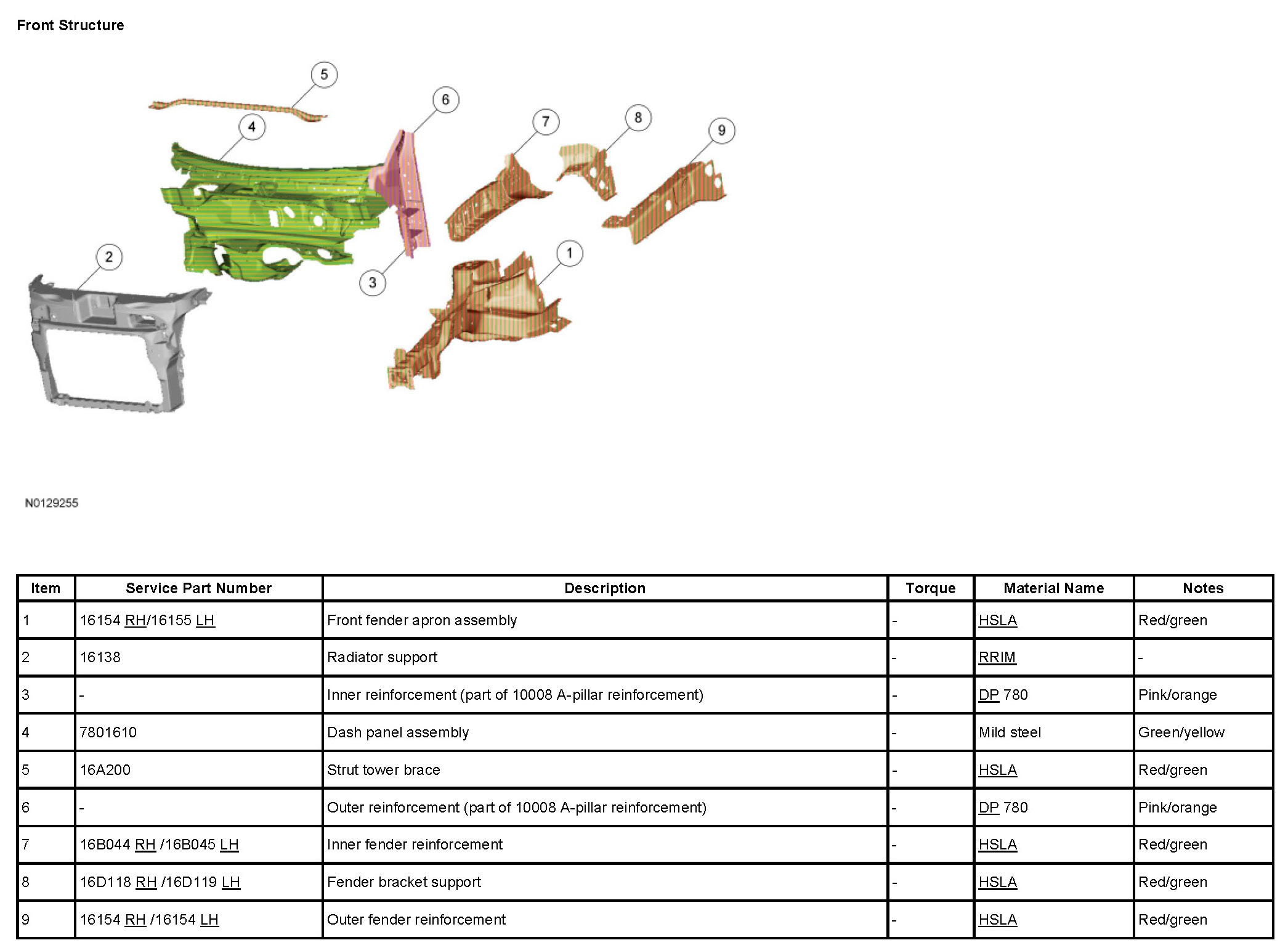 1. NOTE: Factory spot welds can be substituted with MIG plug welds or STRW. Spot welds must equal factory spot welds in both location and quantity.
