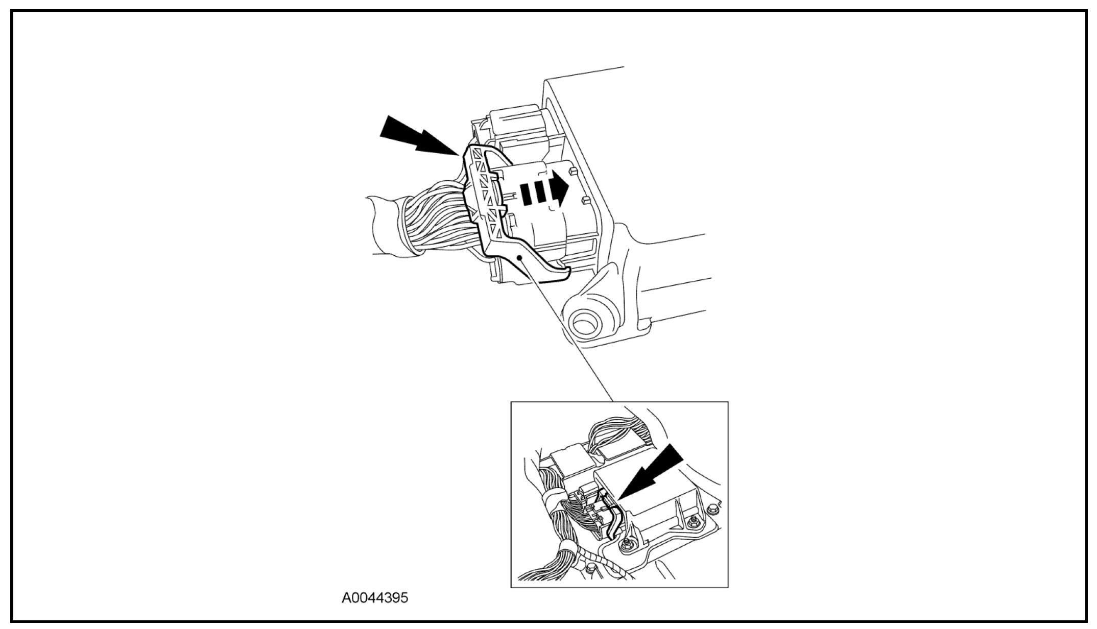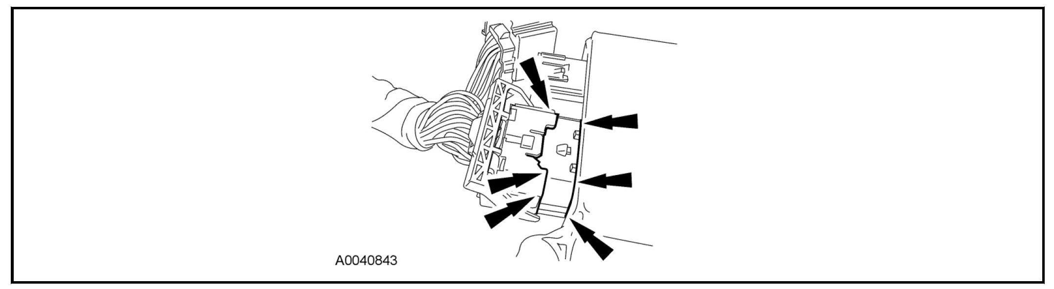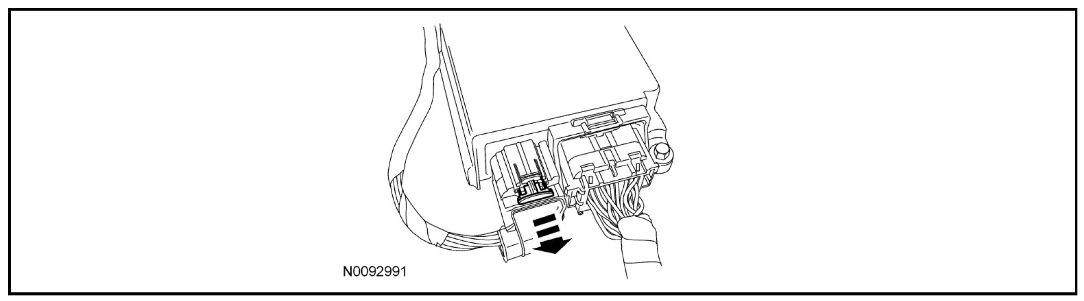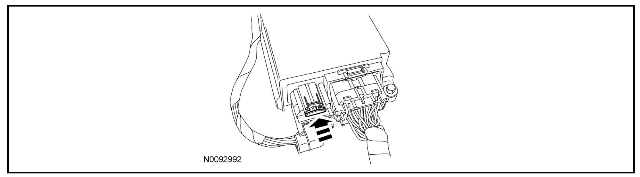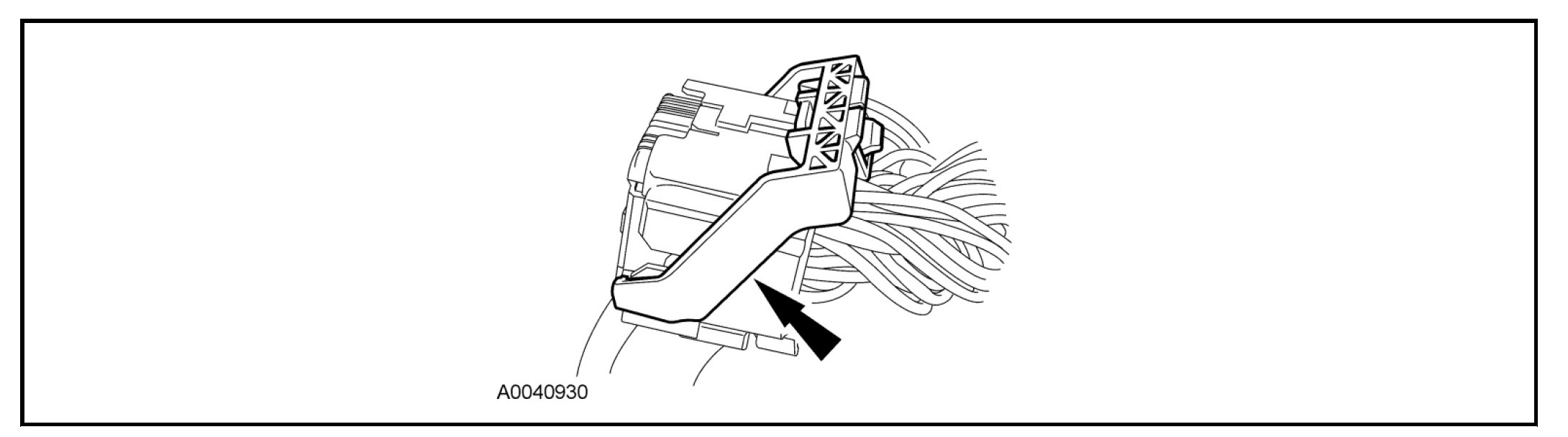 - Using the connector position assurance lever, pivot it toward the RCM, drawing the connector into the RCM.