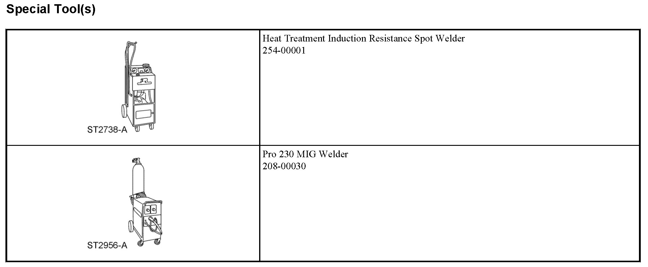 NOTICE: Because of component composition (Dual Phase Steel (DP) 600 steel) a frame rail sectioning kit is not available for this vehicle. Frame rail replacement must be carried out by replacement at the factory seams.