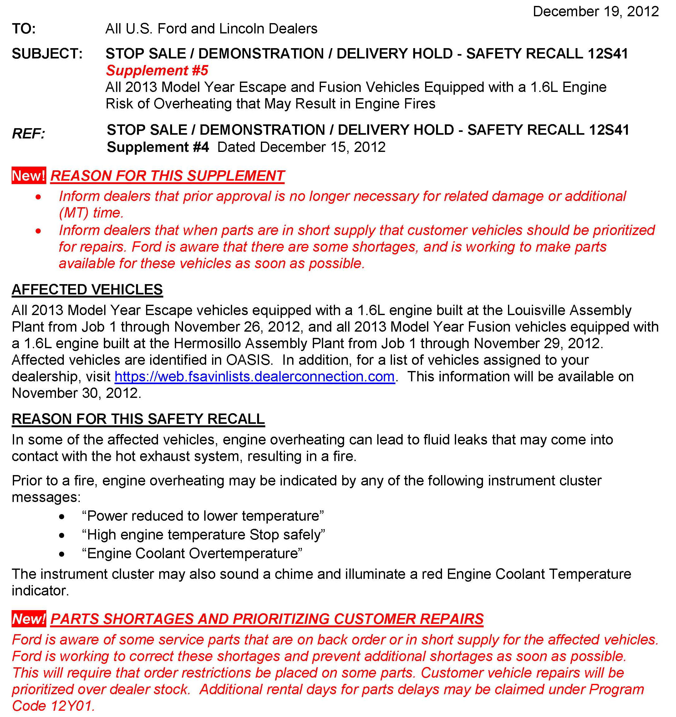 Recall - Engine Overheating, Potential Engine Compartment Fires