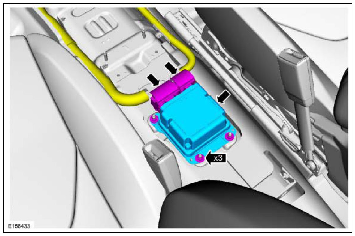 2. When installing a new RCM, Programmable Module Installation (PMI) is required. Refer to the diagnostic scan tool instructions to carry out Programmable Module Installation (PMI).