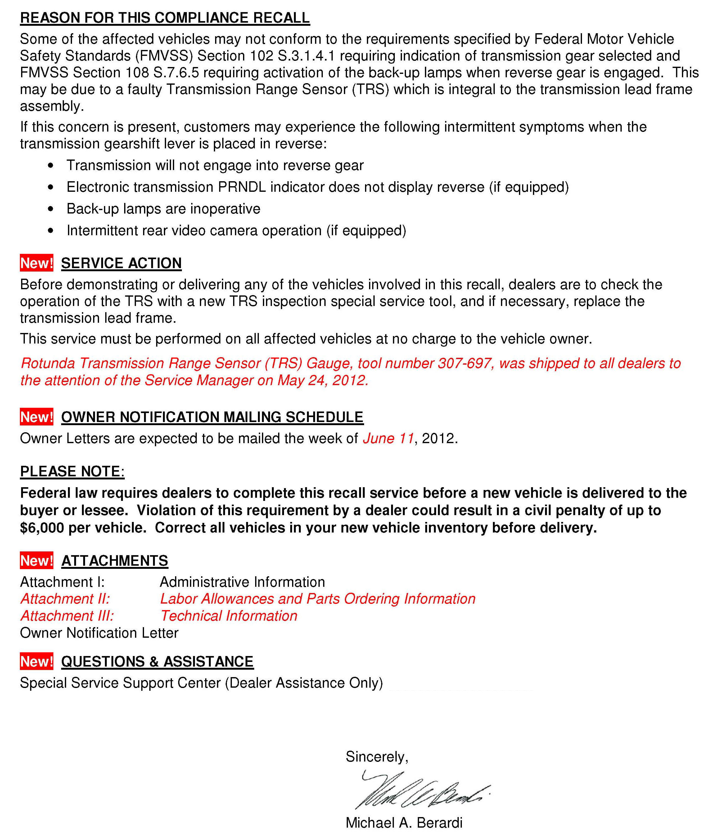 Recall - A/T Range Sensor Inspection/Replacement