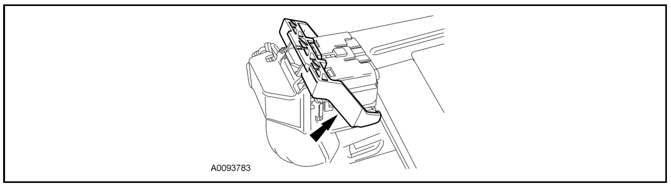 - NOTICE: Do not push the connector to where the lever pivots and seats itself. Light pressure is needed to get the connector into position on the Restraints Control Module (RCM) before using the lever to fully seat the connector.