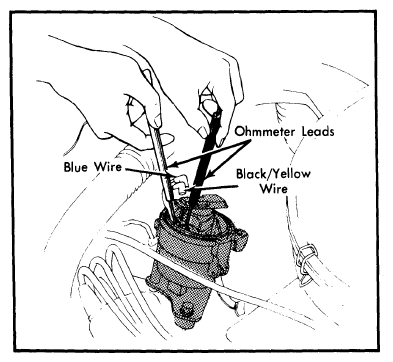 - Then, reverse ohmmeter leads (positive lead to blue wire, negative lead to black/yellow wire. There should now be continuity. If incorrect results are obtained, replace ignitor and repeat test.