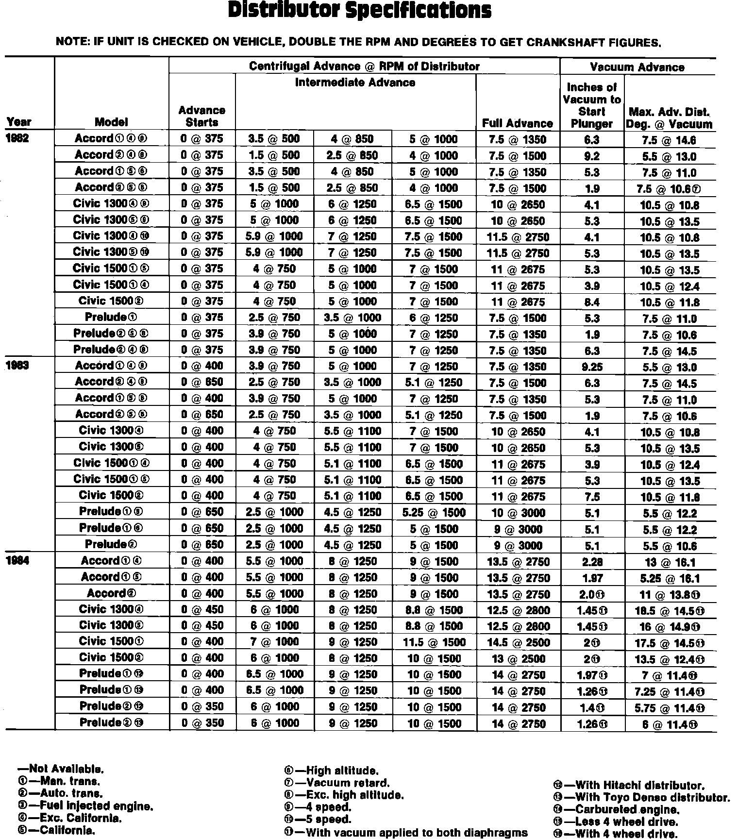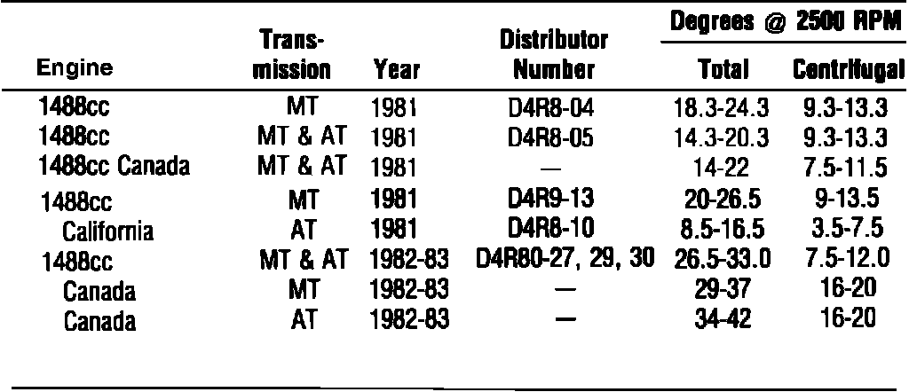 Fig. 012 Distributor Timing Advance Specifications: