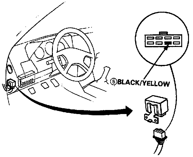 3. Connect the positive terminal of the test to the Black/Yellow wire (5) of the coupler and ground the negative terminal of the tester to body ground.