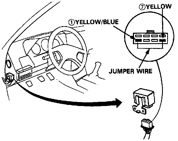 7. Connect a jumper wire between the Yellow/Blue wire (1) and Yellow wire (7) in the coupler.
