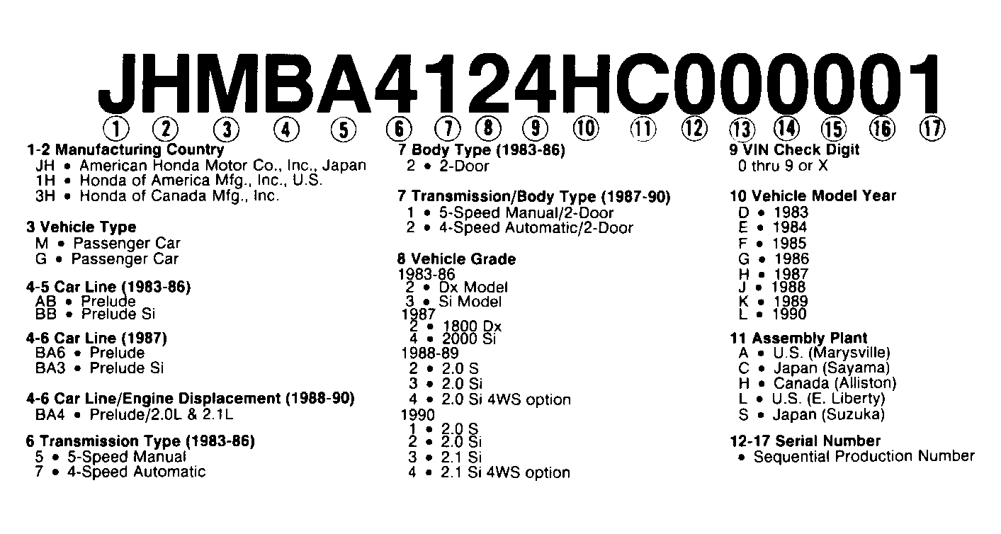 Home >> Honda >> 1987 >> Prelude Base, Automatic >> Repair and Diagnosis (Single Page) >> Engine Performance >> Application >> Engine/VIN Id >> Model Identification >> Notes
