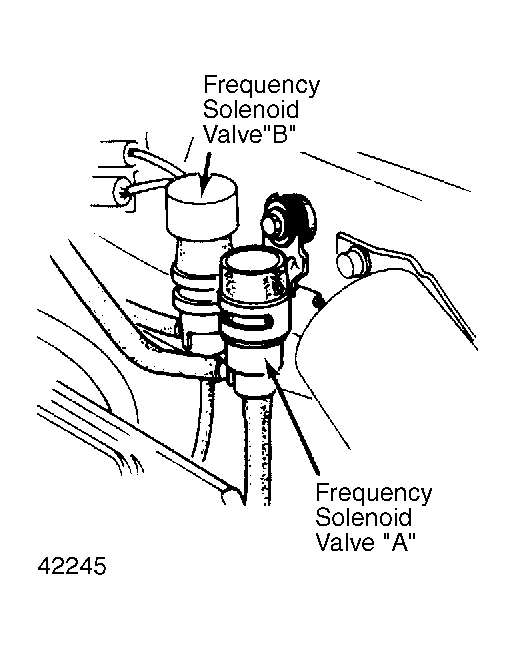 8. Reconnect vacuum hoses. With A/C, radiator fan, heater blower motor, rear window defogger and headlights off, ensure that frequency solenoid valves are inoperable while engine is at idle speed.