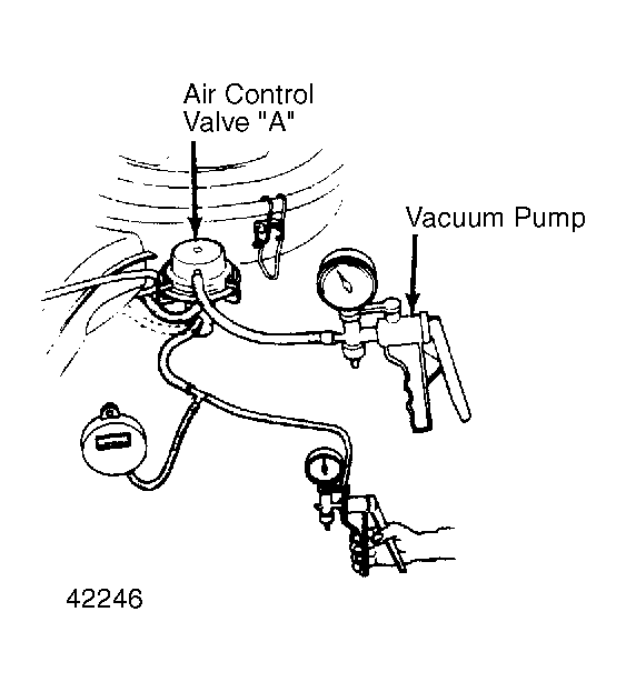 6. If voltmeter indicates 12 volts and engine operating condition is normal, check vacuum lines of system for blockage, leaks or disconnected hoses. If no problem exists, check both air control valves A and B.