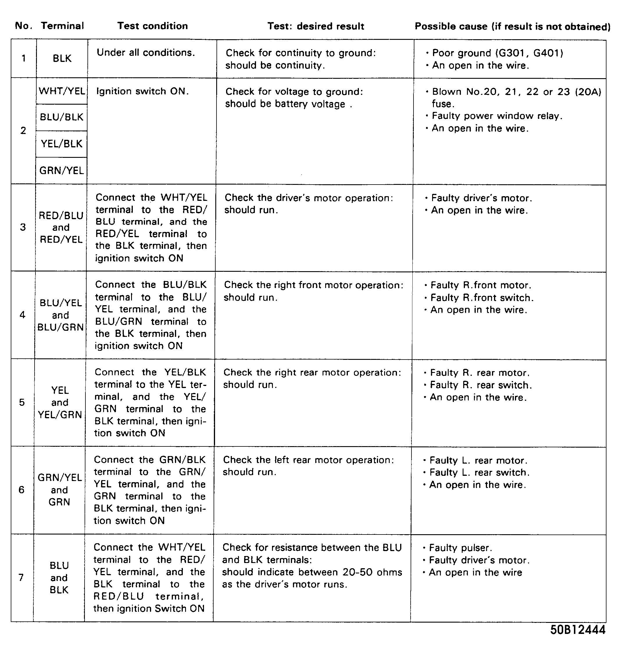 Numbers 1 through 7 in Driver's Switch Input Test, 4 refer to test number, not terminal numbers.