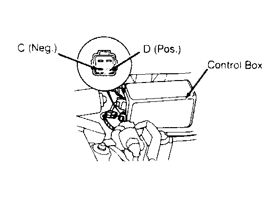 - Turn ignition on. Measure voltage between Red (pos.) and Green (neg.) terminals of harness. If about 5 volts is indicated, go to step 8). If 5 volts is not indicated, measure voltage between ground and Red (pos.) harness terminal. If 5 volts is indicated, repair open in Green/White wire between ECU terminal C12 and sensor.