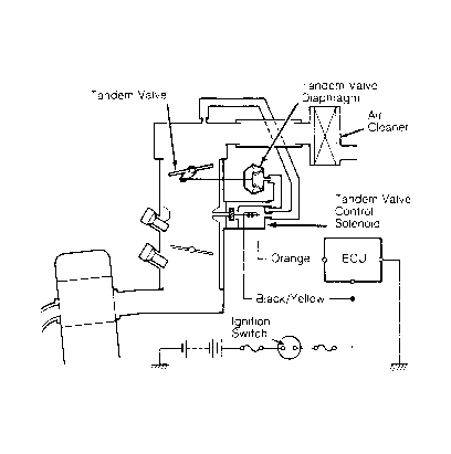 - If vacuum is not present, go to step 5). If vacuum is present, warm engine to operating temperature (cooling fan comes on). Slowly open throttle. If vacuum is present, tandem control system is functioning properly. If vacuum is not present, substitute a known good ECU and retest. If symptom is rectified, replace original ECU.