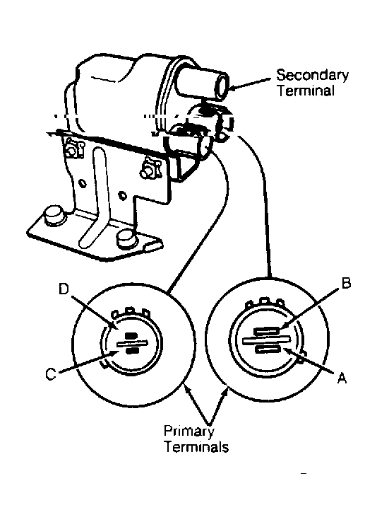 - Disconnect ignition coil primary leads. See Figure . Turn ignition on. Using voltmeter, check voltage between ground and Black/Yellow wire terminal of ignition coil harness.