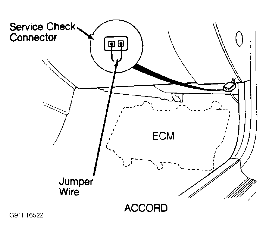 - Turn ignition off. Connect jumper to service check connector terminal. See Figure . Turn ignition on. If CHECK ENGINE light illuminates and flashes code(s), proceed to appropriate self-diagnostic trouble code. If CHECK ENGINE light does not illuminate, go to next step.