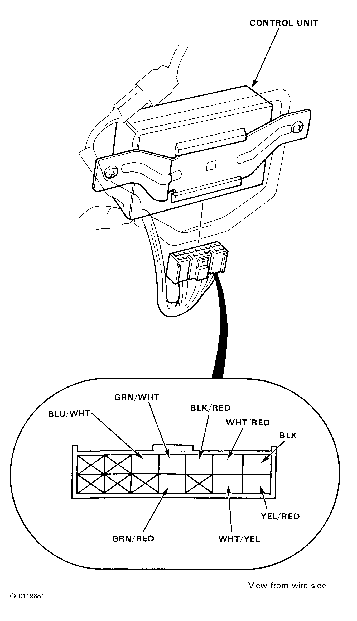 - Disconnect the 14-P connector from the control unit. Make the following input tests at harness pins. See Fig 1 and Fig 2 .