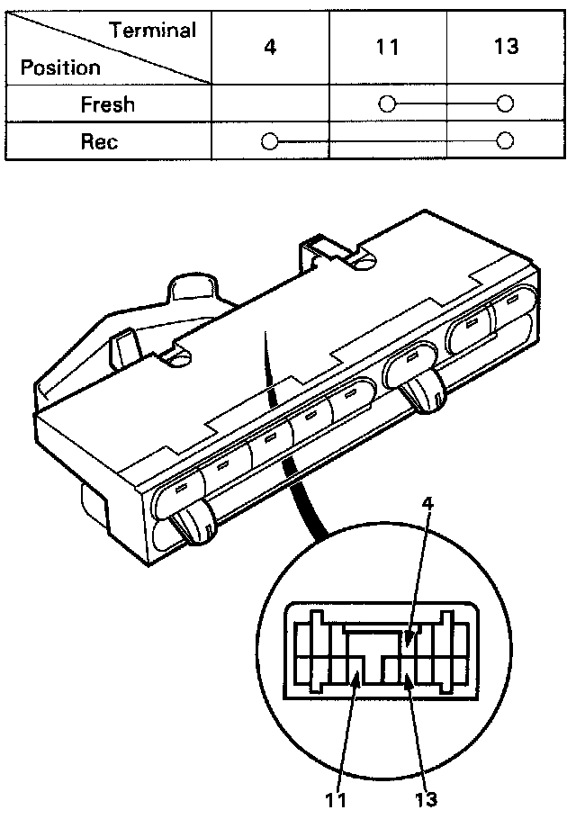 Check for continuity between the terminals according to the table below.