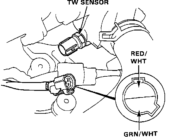 The Coolant Temperature (TW) Sensor is located on the thermostat housing.