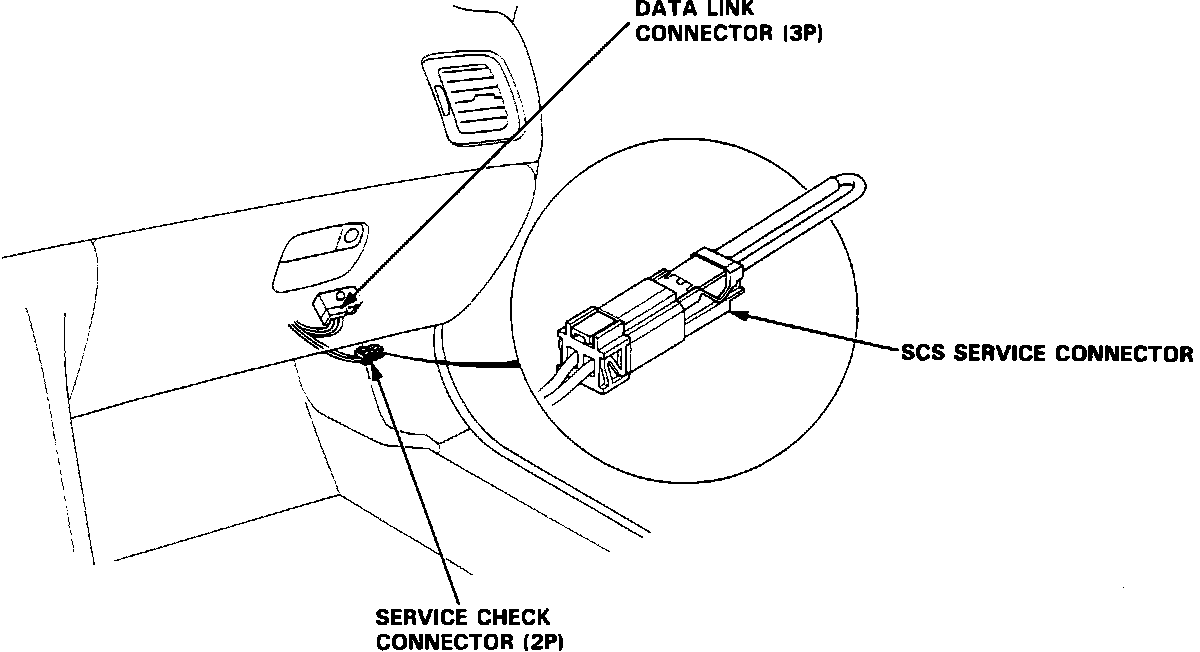 Data Link Connector and SCS Connector (with Shorting Service Connector installed):