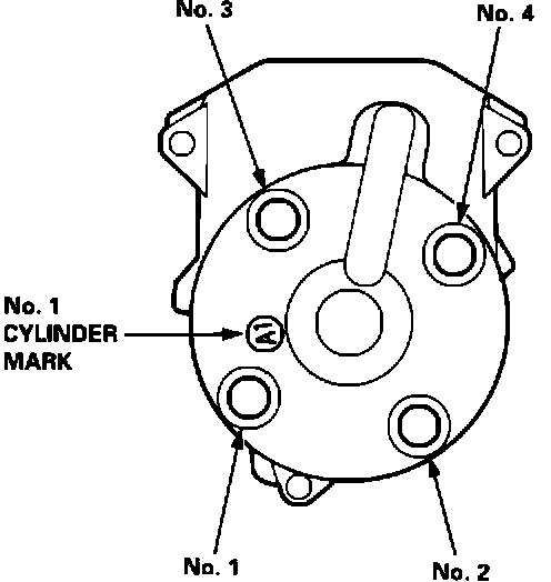 10. Check that the rotor is still pointing toward the No. 1 cylinder, then align the index mark on the housing with the index mark on the coupling.