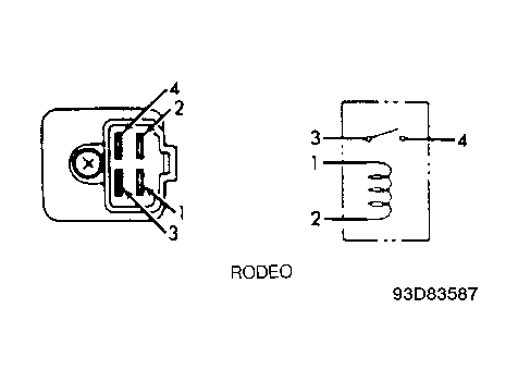Remove power window relay (located behind right side kick panel). Using an ohmmeter, check continuity between relay terminals No. 3 and 4. See Fig 1 . Continuity should not exist. Apply battery voltage to terminal No. 1. Ground terminal No. 2. Continuity should exist between terminals No 3 and 4. If relay does not test as described, replace relay.