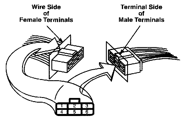 The cavities (and wire terminals) in each connector are numbered starting from the upper left, looking at the male terminals from the terminal side (or looking at the female terminals from the wire side. Both views are in the same direction so the numbers are the same.) All actual cavities are numbered, even if they have no wire terminals in them.