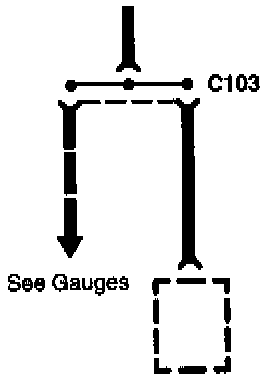This symbol represents one bus inside the cap of a junction connector. A junction connector cap contains several buses, but only the one affecting that circuit will be shown. The dots represent tabs on the bus that the wire terminals connect to. Remaining wires to the same bus are represented by a broken line.
