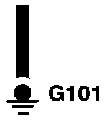 This symbol means the end of the wire is attached (grounded) to the car frame or to a metal part connected to the frame. Each wire ground (G) is numbered for reference.