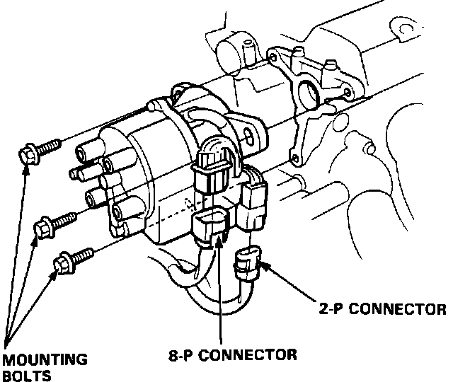 DISTRIBUTOR REMOVAL1. Disconnect the two and eight pin connectors from the distributor.