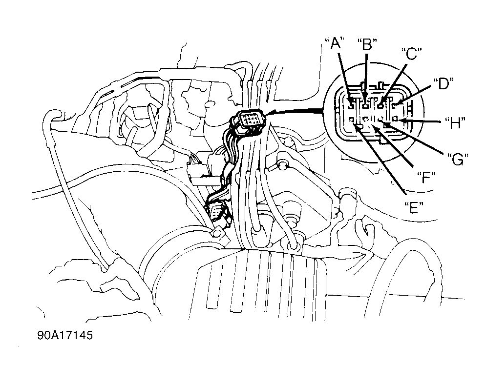 - Unplug TDC/CKP/CYP sensor connector, located at distributor. Measure resistance between terminals "B" and "F". Measure resistance between terminals "C" and "G". See Fig 1