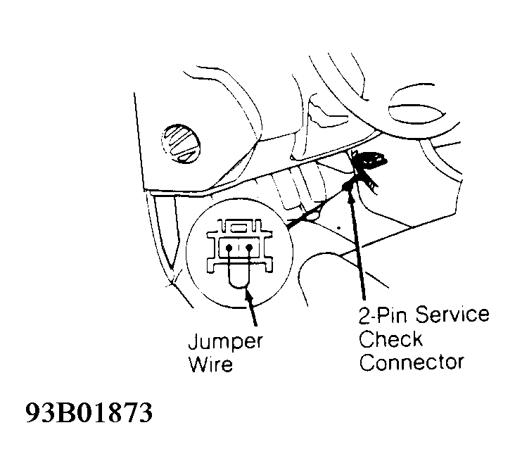 - Take 2-pin service connector (Blue wires) from behind center console. Connect terminals with jumper wire. See Figure
