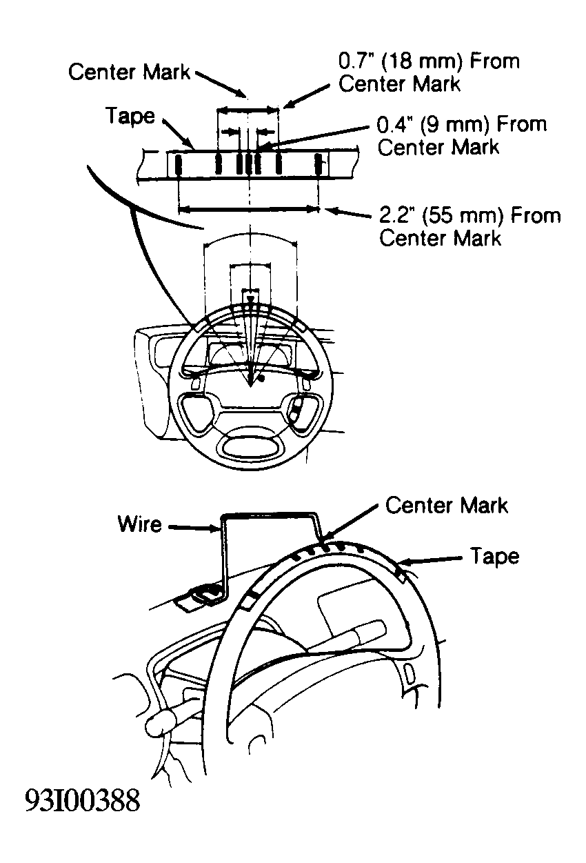 . Use heavy wire stock to make pointer. Using masking tape, attach pointer to dash aligned with center mark on steering wheel.